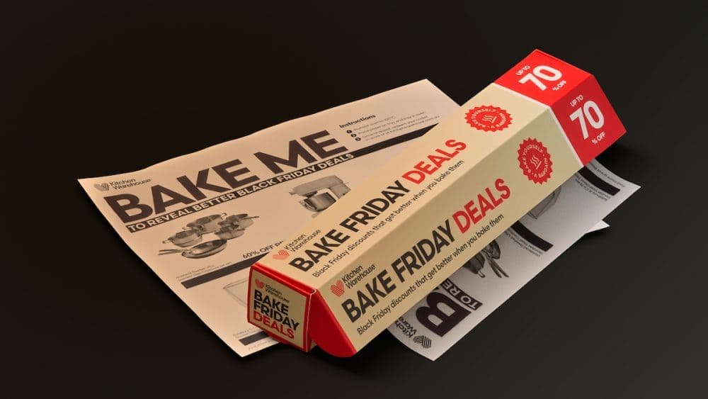 Kitchen Warehouse推出「烘焙星期五特惠」,把折扣藏進日常最不起眼的廚房用品-烘焙紙裡。這項設計巧妙運用熱感油墨,將黑色星期五從比價競賽,轉化成一場需親手參與的體驗,顧客要真的開始烘焙,才能解鎖優惠,讓折扣像刮刮卡一樣充滿期待。這不只提高參與感,也運用「付出才有回報」的心理機制,讓消費者在使用產品當下,重新思考升級廚具的可能性。線上訂單同樣附贈烘焙紙,讓實體體驗延伸到數位購物,為實體零售創造新的價值。