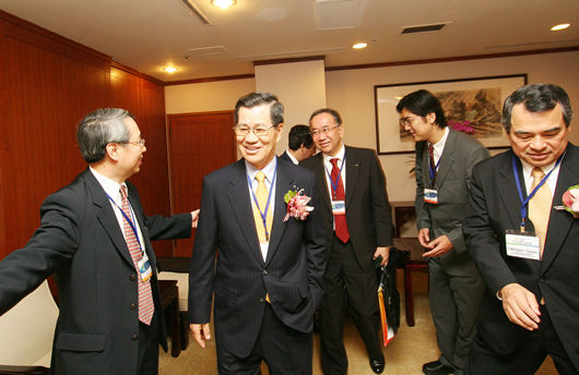 第一場專題演講:台灣貿易的發展歷程與未來展望(引言人:劉監事會召集人國昭,主講人中華經濟研究院、兩岸共同市場基金會蕭董事長萬長)