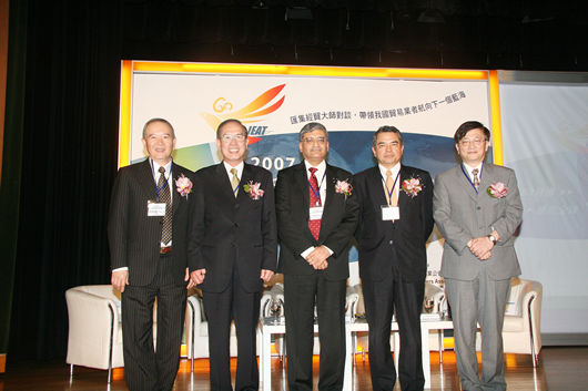 第三場論壇:全球化趨勢下,貿易業者如何進行整合以發揮綜效(引言人:陳常務理事達雄、主持人:政治大學EMBA執行長于教授卓民、與談人:日本伊藤忠商事株式會社海外擔當役員中川雅博、特力集團何董事長湯雄、印度Mahindra Intertrade Limited, Mahindra & Mahindra總經理Mr. Harsh Kumar)