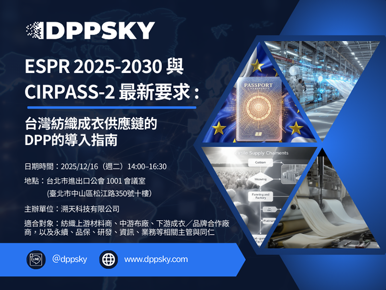 主題:「ESPR 2025–2030 與 CIRPASS-2 最新要求:台灣紡織成衣供應鏈的 DPP 導入指南」