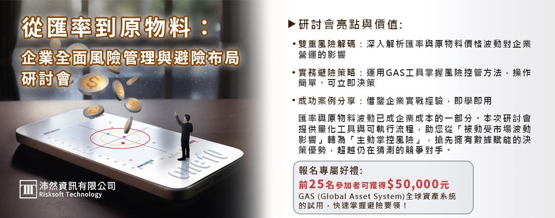 這場免費研討會 , 目標是為您提供實際、可執行的避險工具,讓風險從成本威脅轉變為可預期的決策優勢。