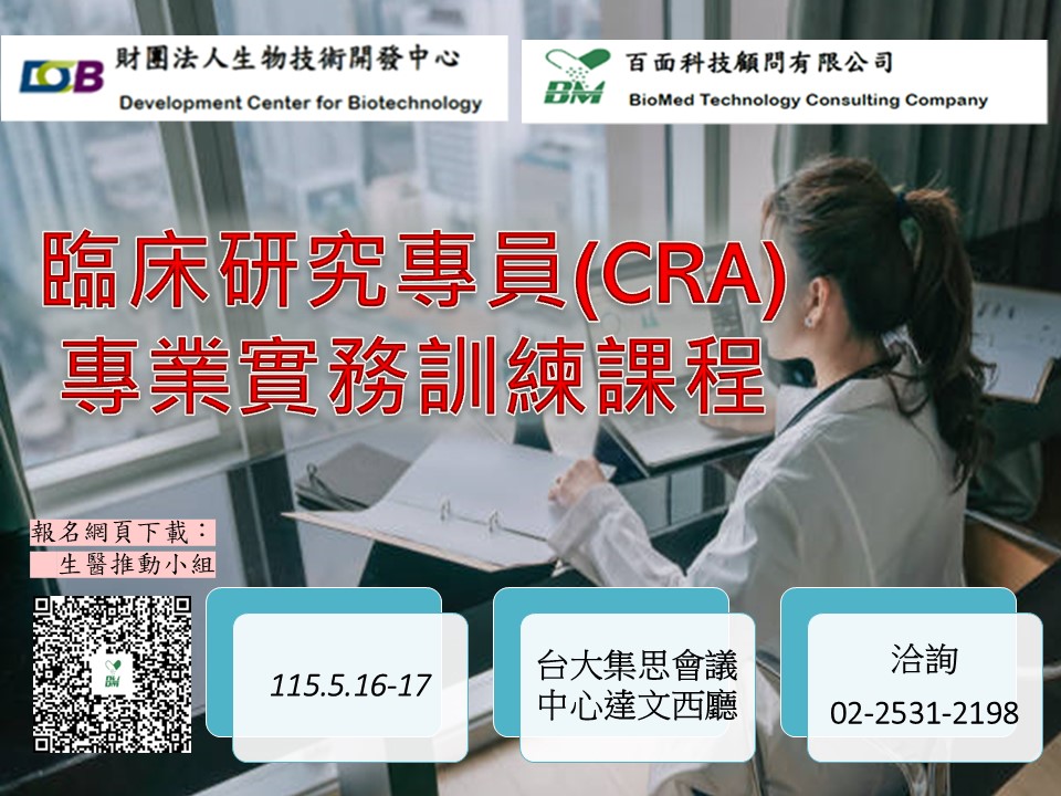 - 品牌名稱:歡迎報名臨床研究專員(CRA)專業實務訓練課程