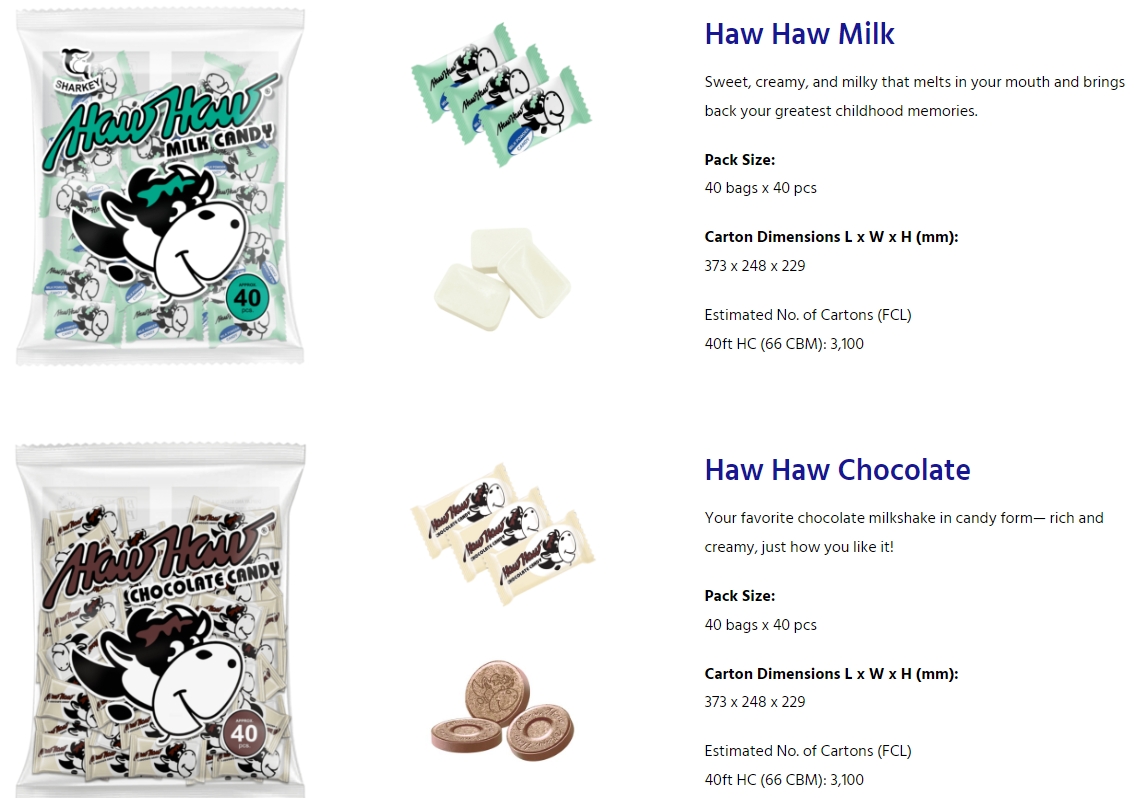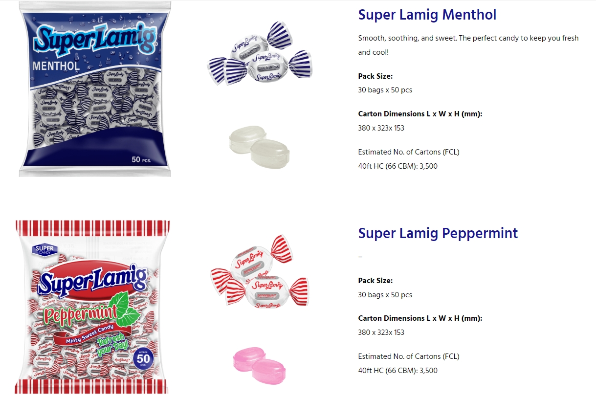We are a confectionery manufacturing company in the Philippines since 1962. Our more popular products are the Hawhaw Milk Candy, Superlamig Menthol Candy, Orange Swits Jelly Candy and StayFresh Menthol Candy.