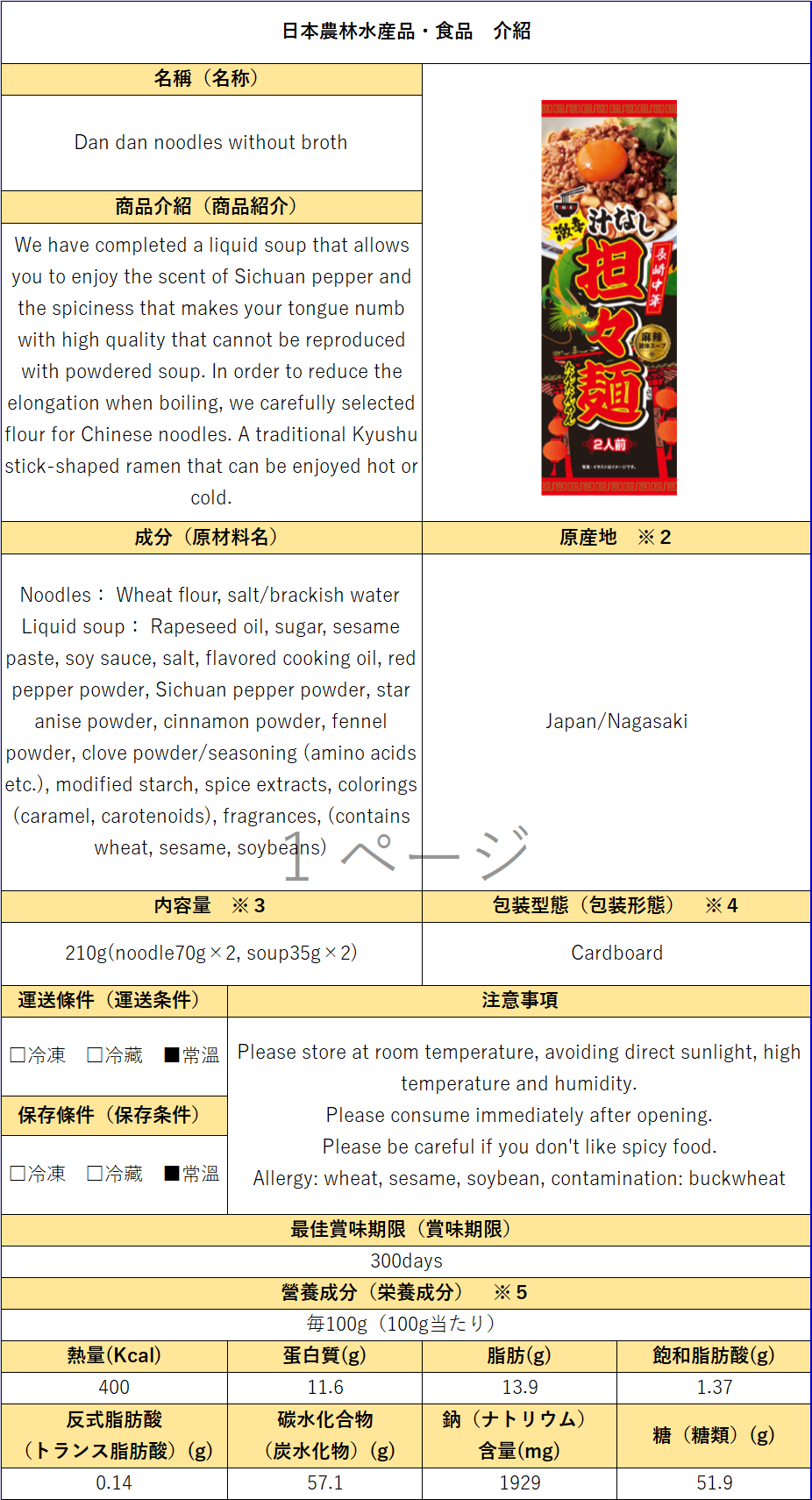 進口代理—日本長崎—「有限會社TANAKA物産」担担麵