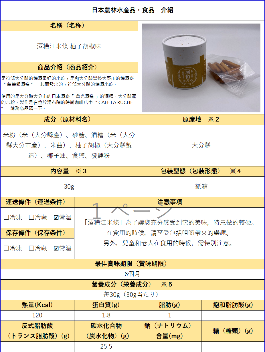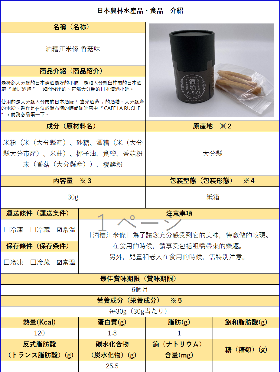 進口代理—日本大分—「中和國際株式會社」酒糟江米條