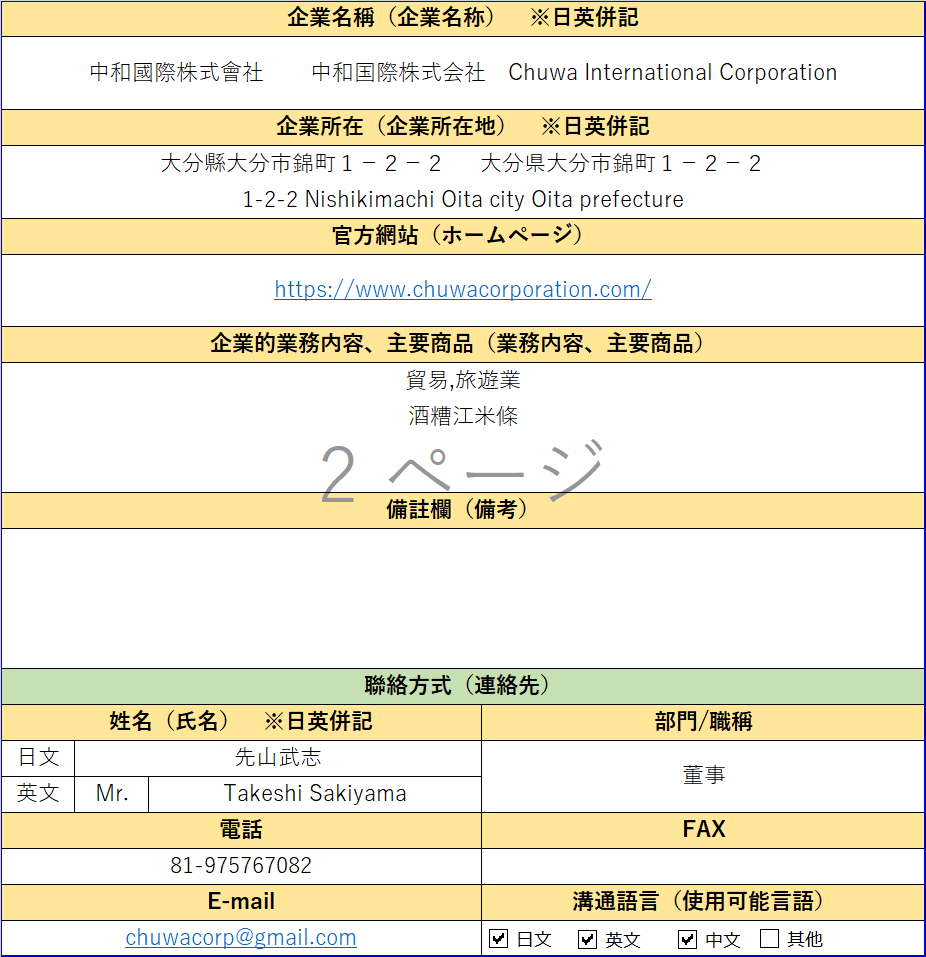 聯絡人:先山武志( Mr. Takeshi Sakiyama )