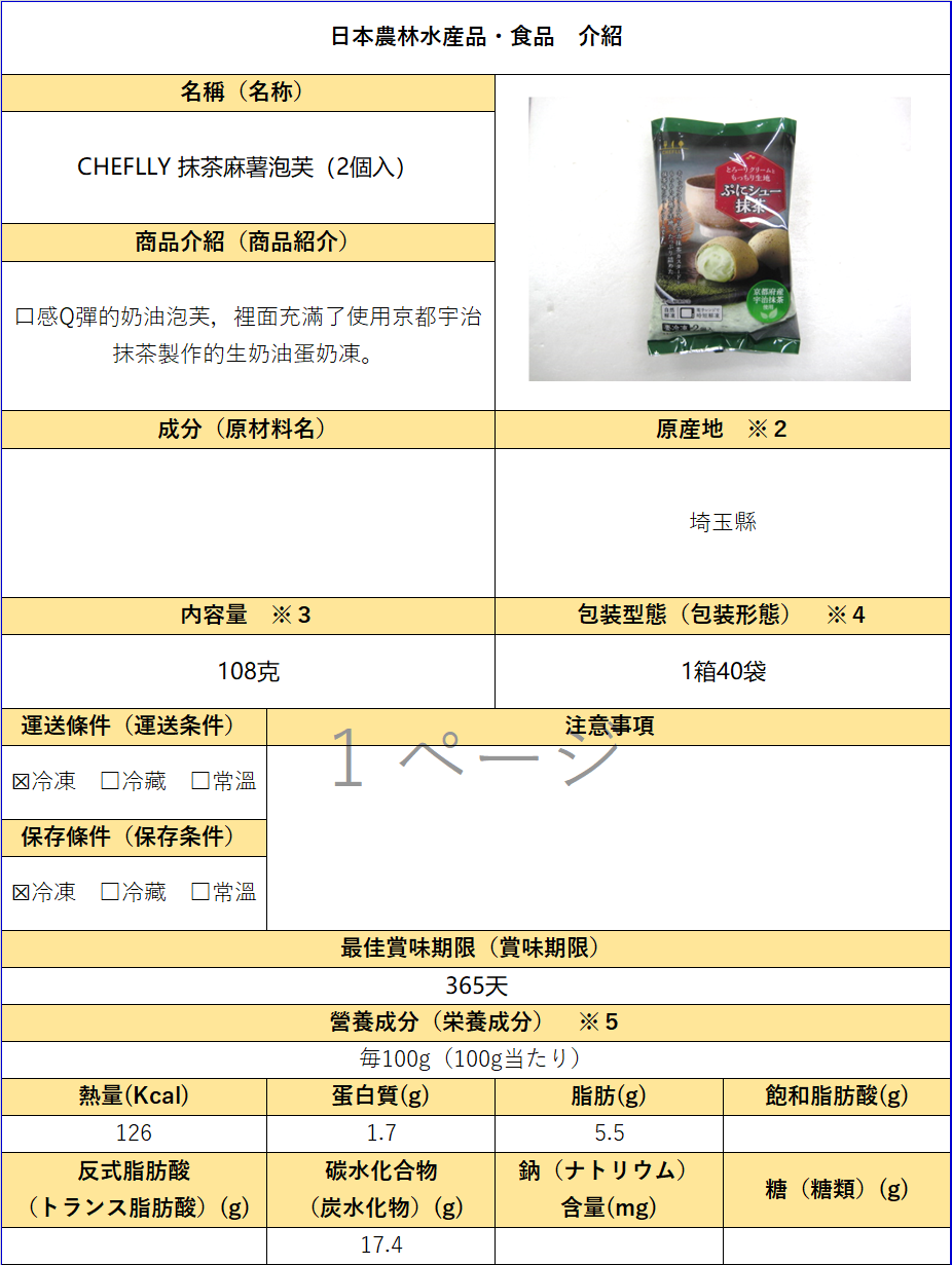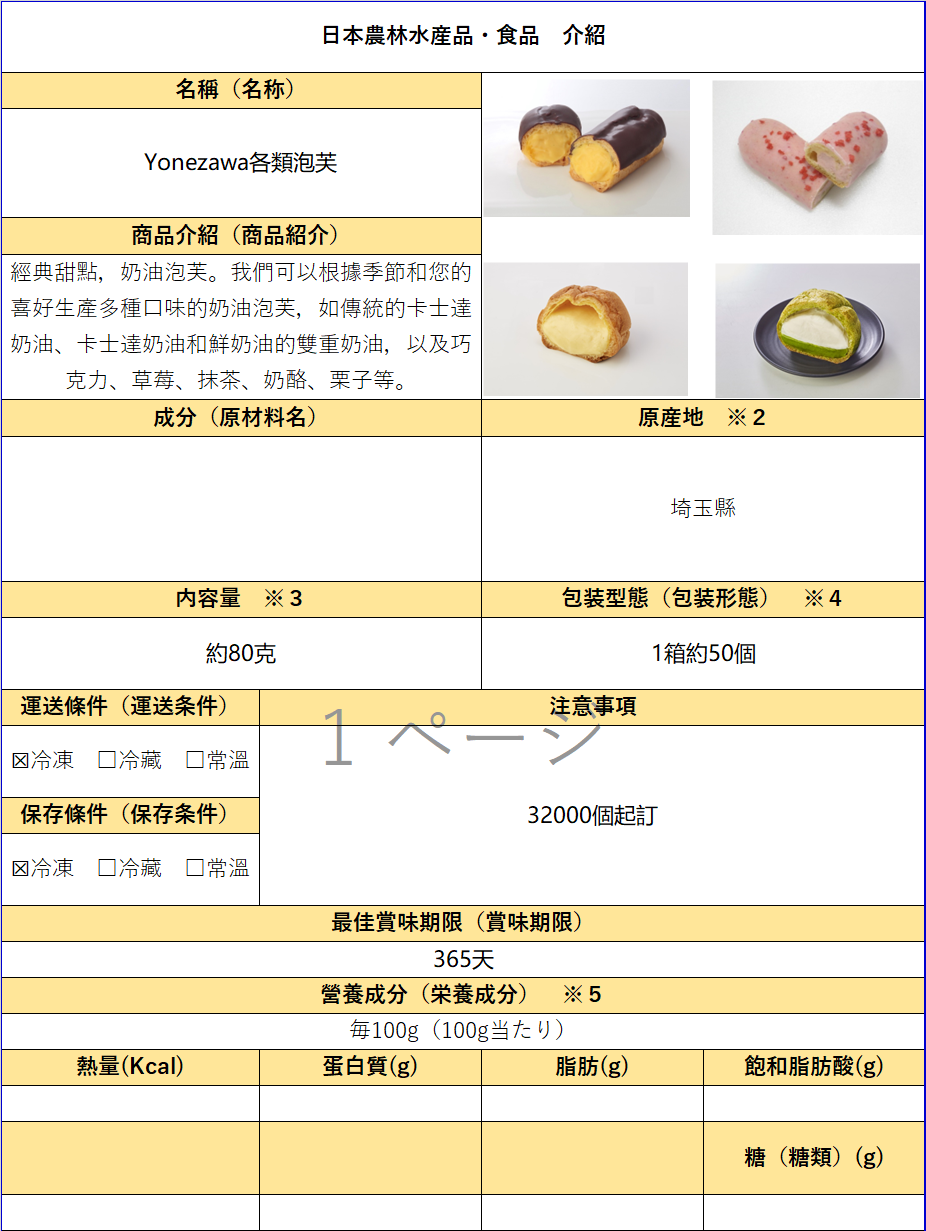 進口代理—日本東京—「株式會社Air Water Argi & Foods」蛋糕、泡芙、冷凍西蘭花