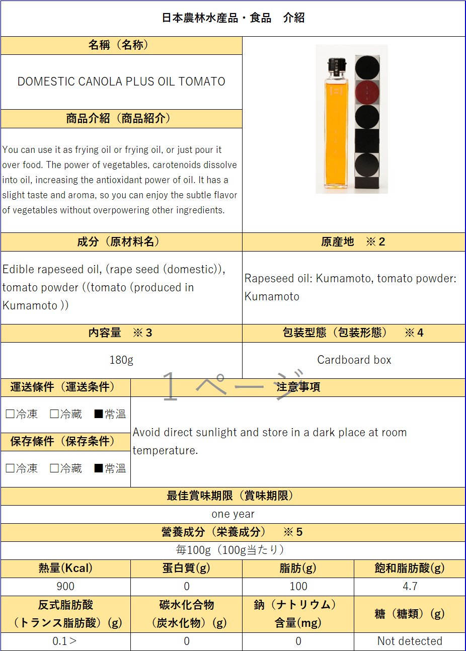 - 公司名稱:肥後製油株式會社