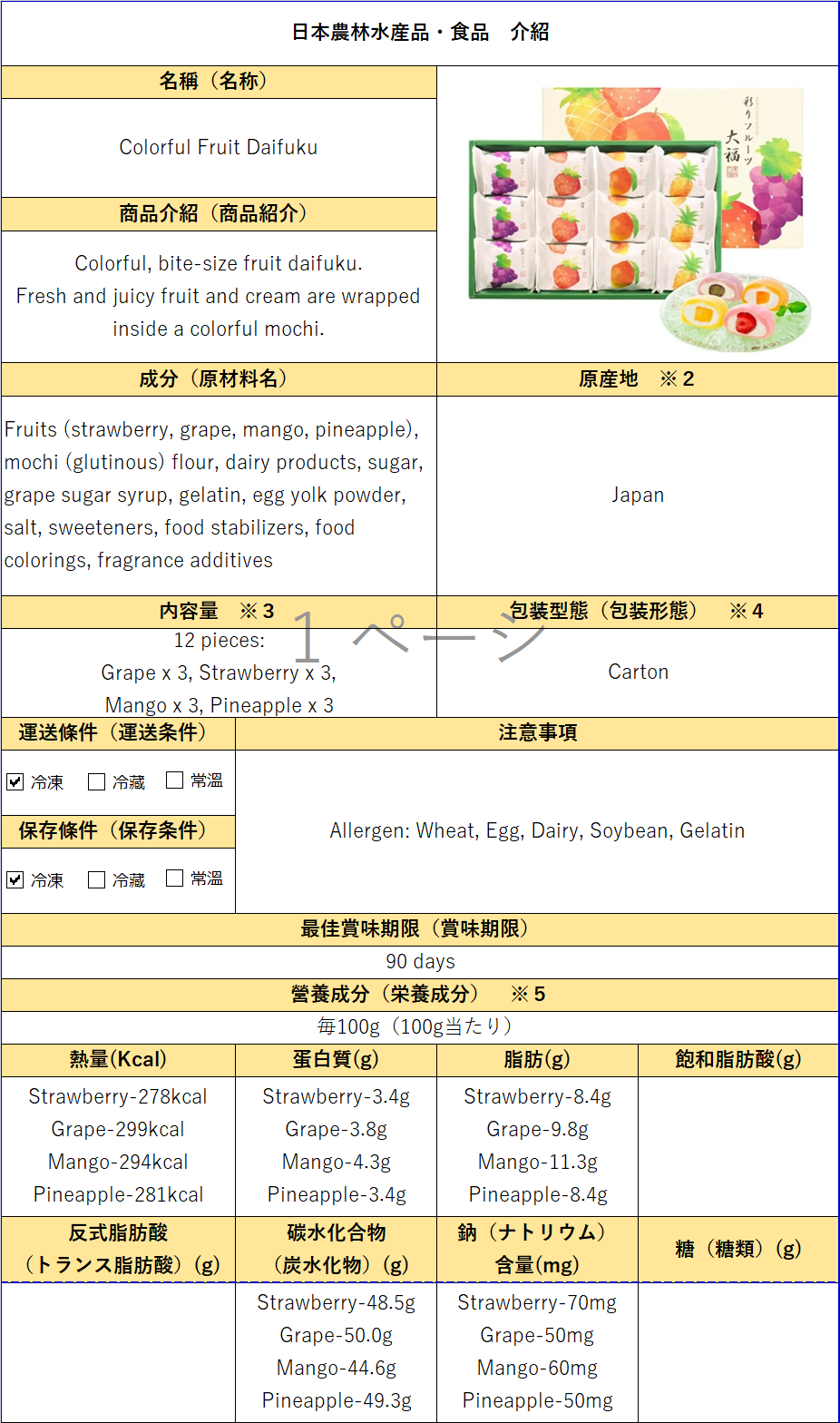 - 產品/技術:"Business: Export Service Japanese fruits, vegetables, and fishery products mainly to Asia."