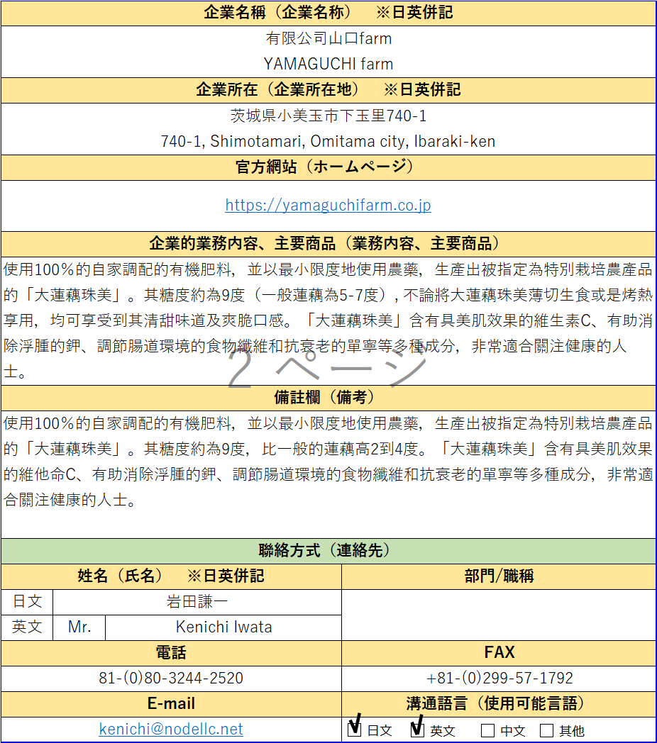 進口代理—日本茨城—「有限公司山口farm」蓮藕