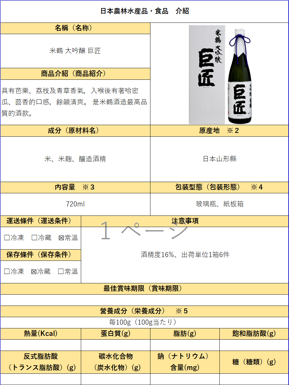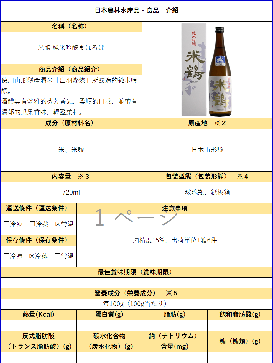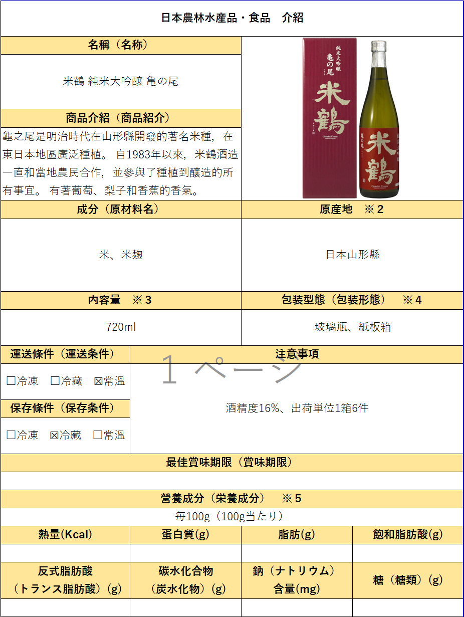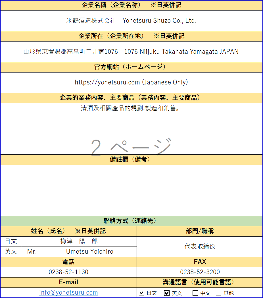- 公司名稱:米鶴酒造株式會社