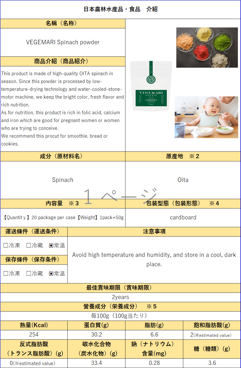 進口代理—日本大分—「株式會社村Network」菠菜粉、米粉