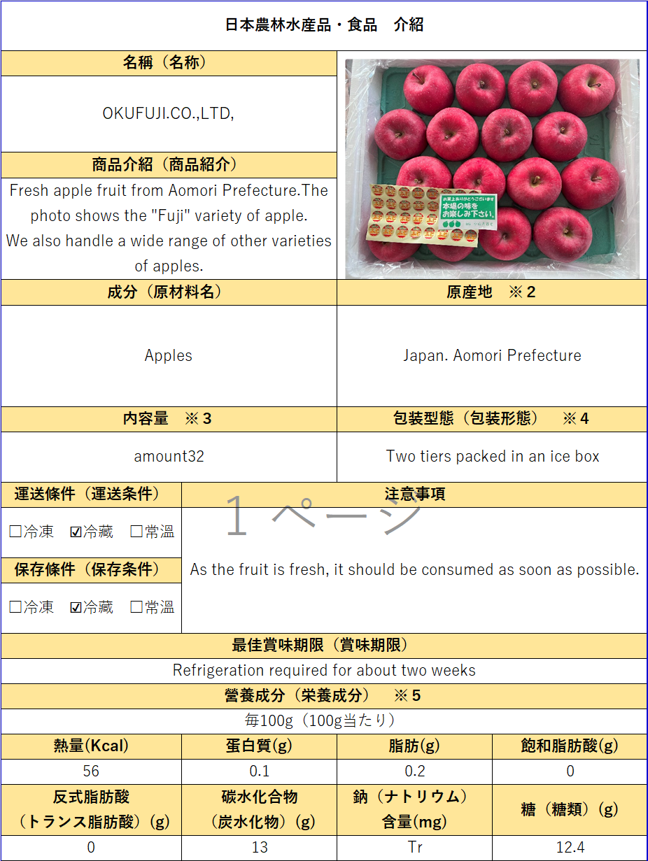進口代理—日本青森—「株式會社奥富士」蘋果