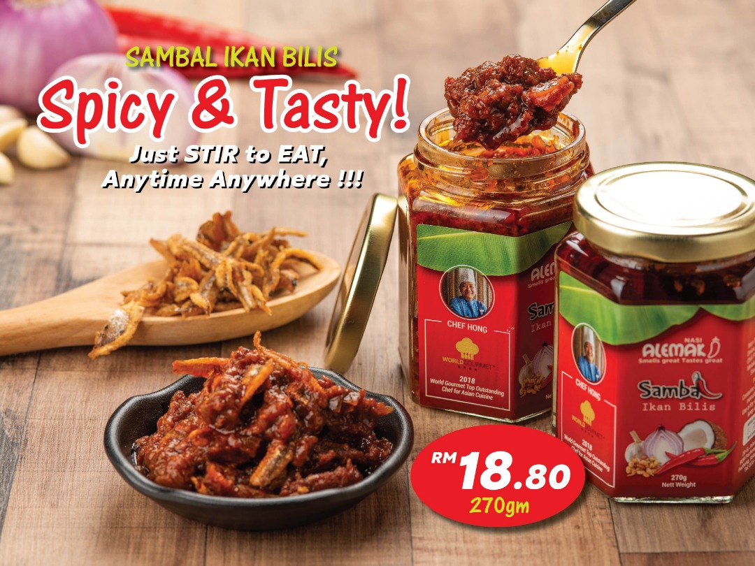 ALemak 江魚仔辣椒醬是馬來西亞人傳統的國民美食醬料,我們以豐富的江魚仔做為主料,讓家庭每一餐更顯美味!ALemak 江魚仔辣椒醬可以用來拌飯,拌面,甚至搽面包。還可以用來炒飯,拌炒海鮮,蔬菜,猶其是炒空心菜更是一絕!