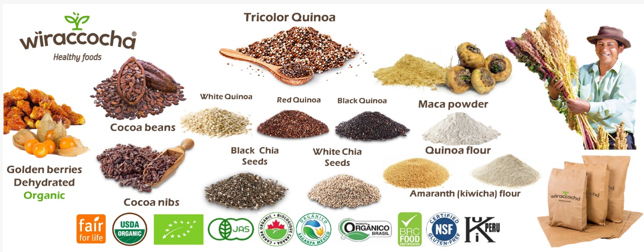Wiraccocha 秘魯SAC 是一家成立於2008 年12月的家族企業,該公司主要致力於有機產品,主要是安第斯穀物產品(藜麥、Salvia Hispánica、莧菜)的生產、加工和銷售。目前,Wiraccocha與秘魯安第斯山脈的來自阿亞庫喬、阿普里馬克和庫斯科省的200 個社區的1440 多名小農合作,擁有獲得有機認證的用於種植的土地面積3000 多公頃, 為全世界提供健康食品。