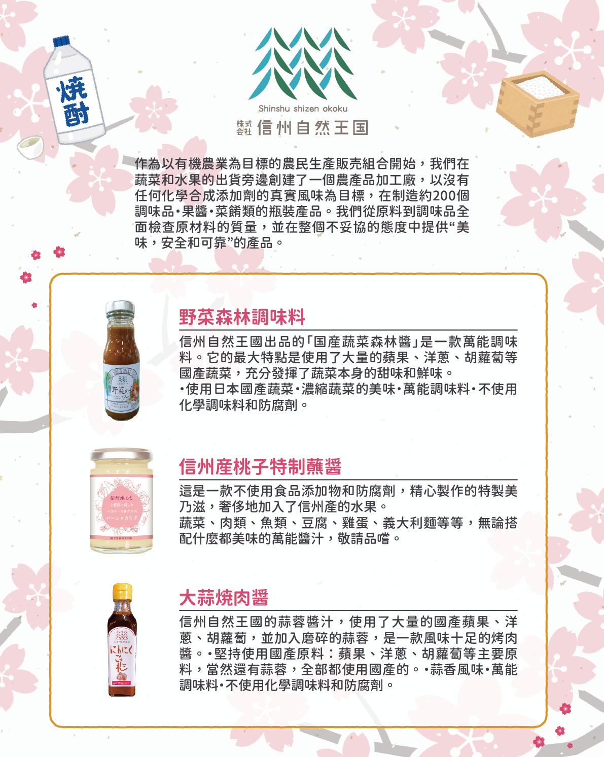 進口代理—日本長野—「株式會社信州自然王國」調味料、燒肉醬等