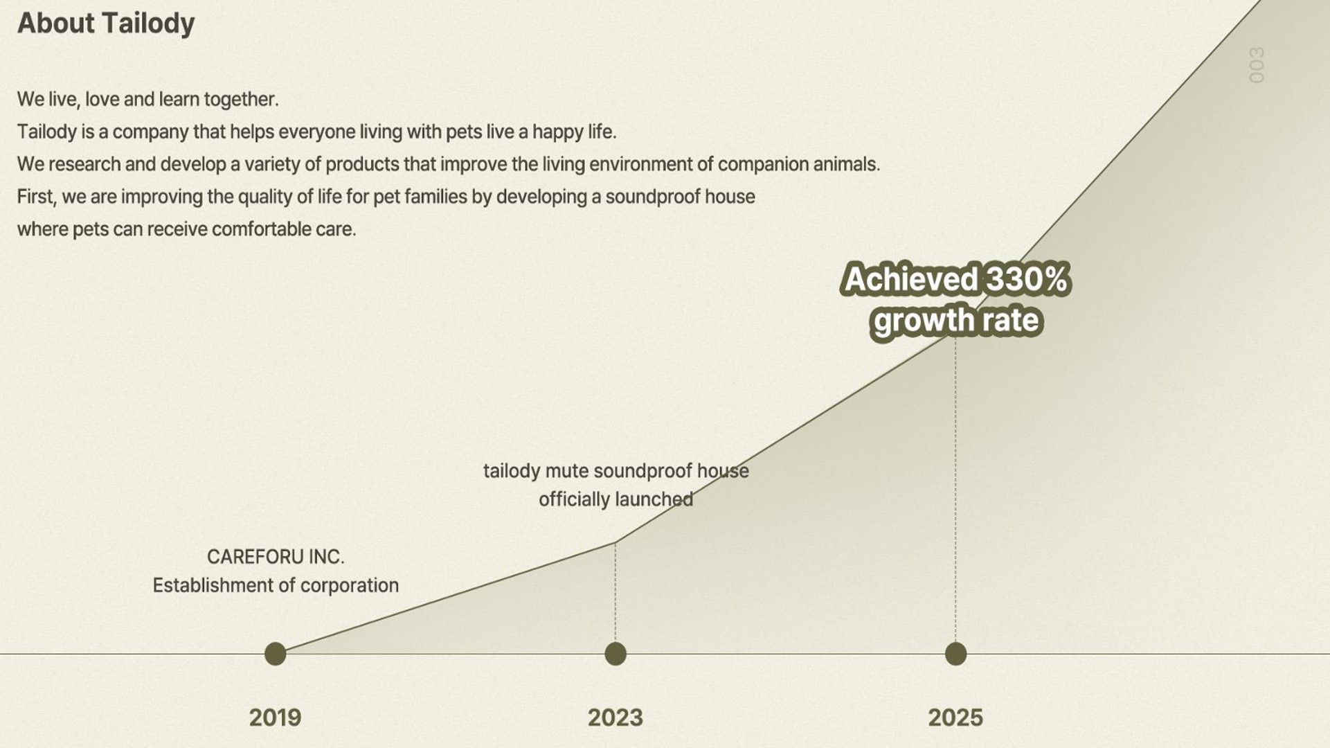 Tailody(테일로디)是一家來自韓國的寵物科技品牌,專注於為貓狗等伴侶動物提供高品質的生活環境。其主打產品為「Mute」系列的智慧型隔音寵物屋,旨在減少寵物因外部噪音而產生的壓力和焦慮,特別適合對聲音敏感或有分離焦慮的寵物。