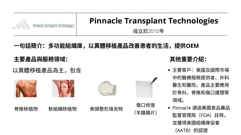 - 公司名稱:Pinnacle Transplant Technologies