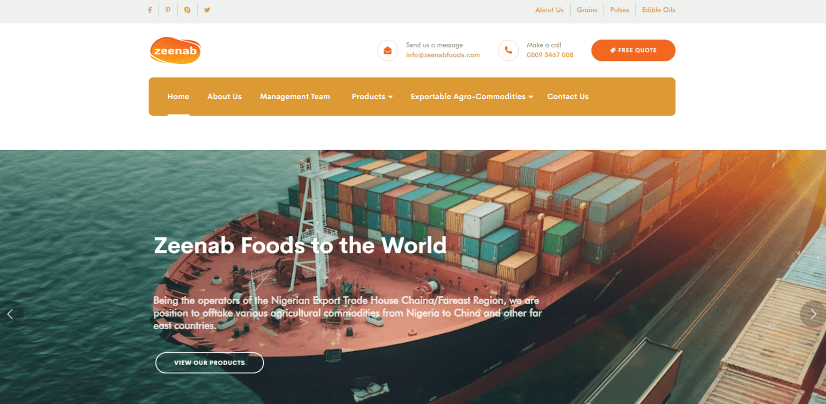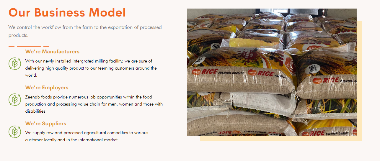 Zeenab成立於2011年9月,提供奈國業者及國際客戶食品加工及農業貿易服務,建立、整合商業策略,掌握奈國農業價值鏈,拓銷農產品到全球市場。