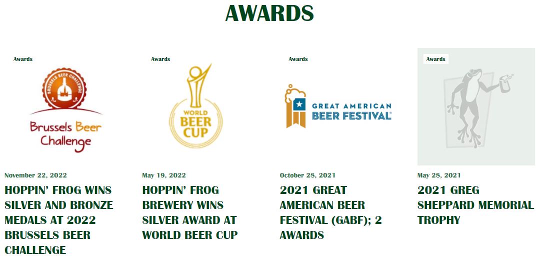 Hoppin' Frog精心投入研製各種創意、特色口味之精釀啤酒,現有超過百種啤酒產品:https://hoppinfrog.com/beers/