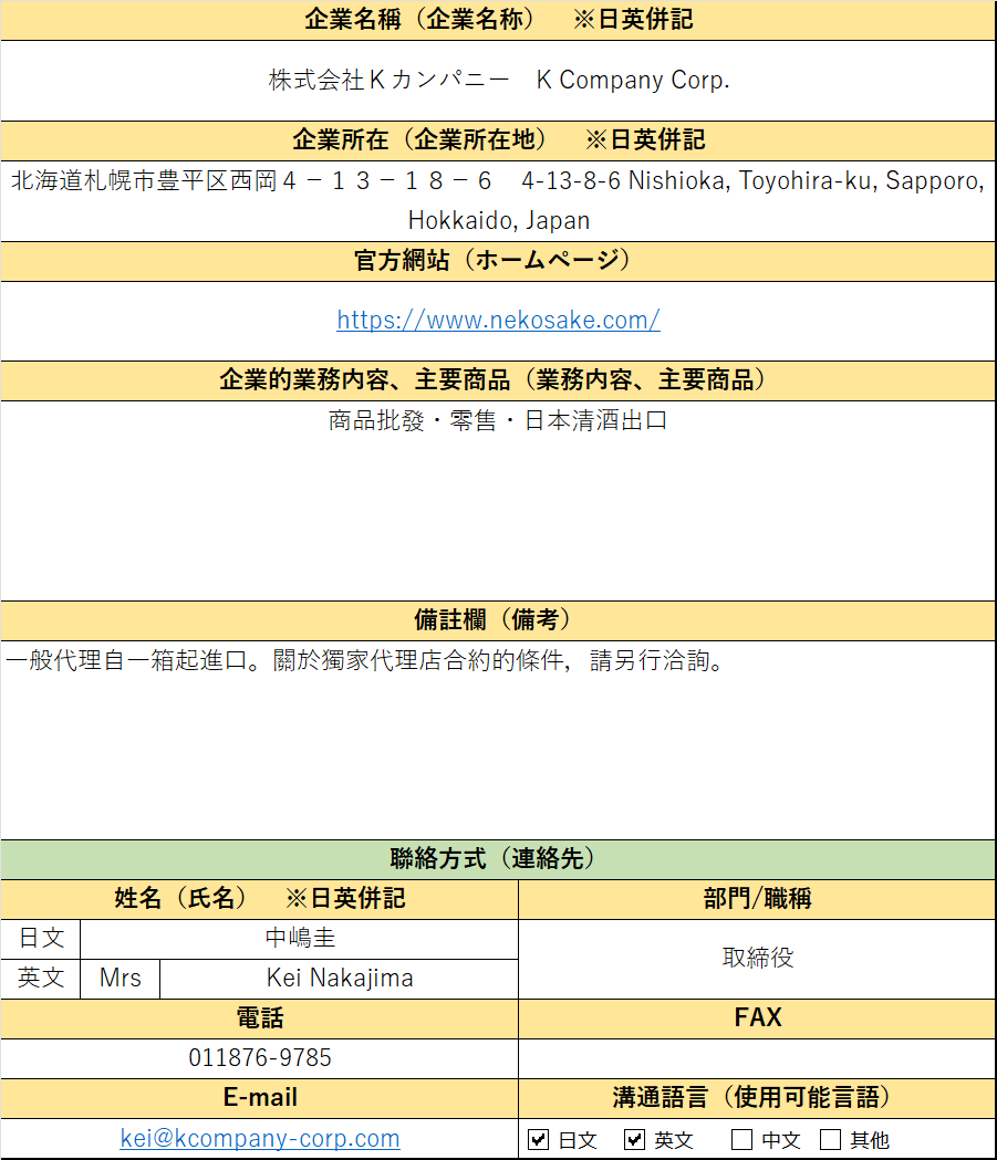進口代理—日本北海道—「株式會社Kカンパニー」日本酒
