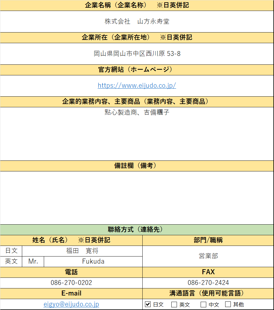- 公司名稱:株式会社山方永寿堂