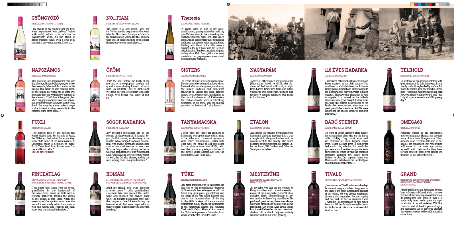 In honour of our ancestors in the 19th and 20th century “peasant-bourgeois” world of Szekszárd, our late grandparents and great-grandparents appear on the bottle labels. We harvest winegrapes from 37 hectars.